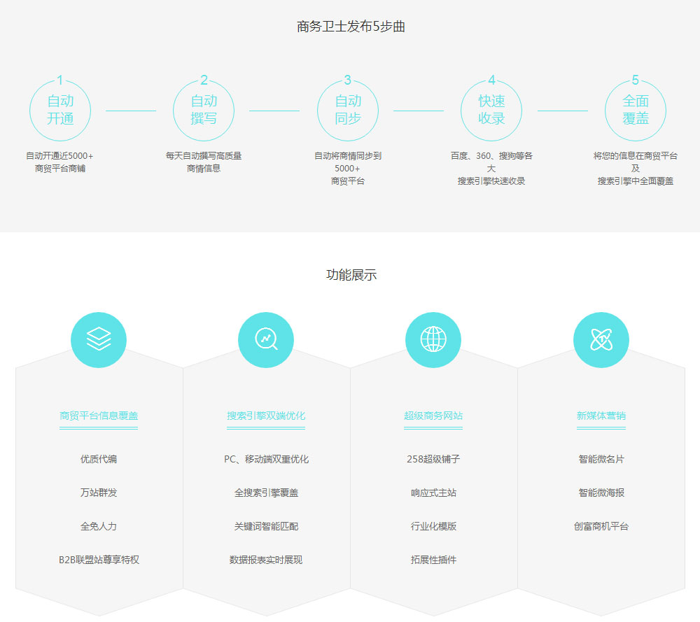 綜上,該類推廣系統(tǒng)推廣方式類似,都是通過模板建站,三網(wǎng)合一,關鍵詞優(yōu)化,商情發(fā)布等方式提升用戶的曝光率,但又各具特色,客戶可根據(jù)自身情況選擇。